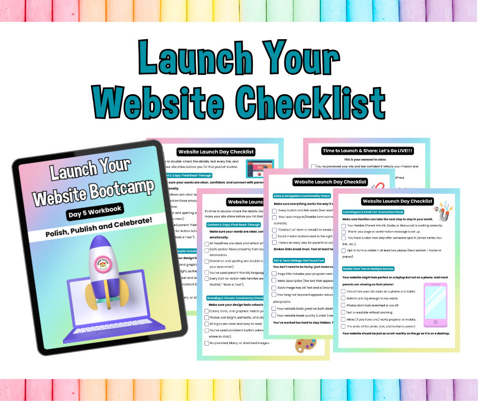You’ll go from “I don’t even know where to start” to "I have a beautiful, simple 1-page website that’s ready to enroll families.”