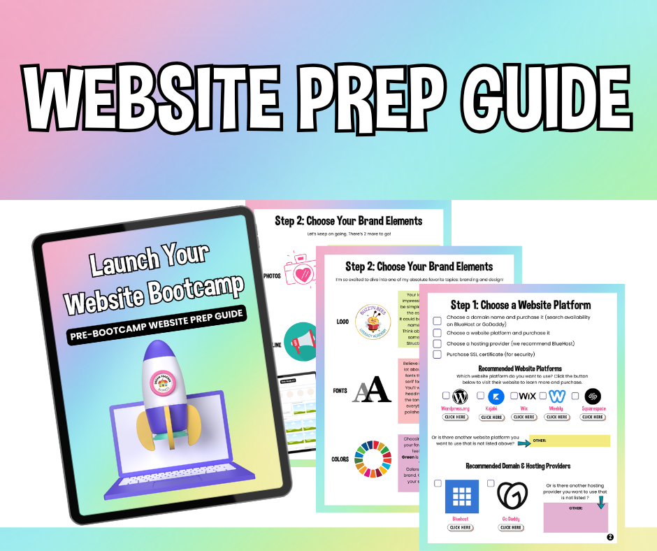 This guide will help you grab everything you need such as: platform, domain, colors, fonts, and photos before you start creating your website.